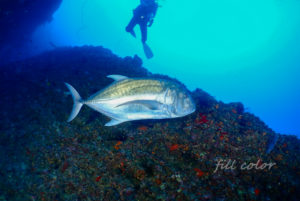 ホーシューではダイバーがたかるカマストガリザメはチラ見で離脱。…
