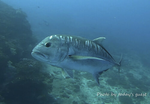ナンヨウカイワリ、イソマグロ、オグロメジロザメなど。 ロウニンとカスミアジがグルクン狩りしてたのが楽しかったです