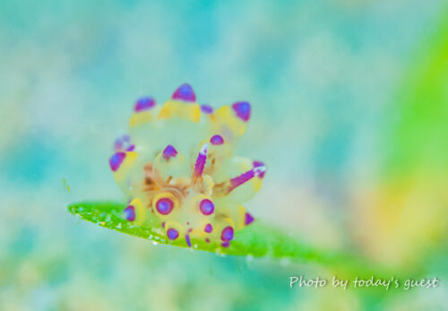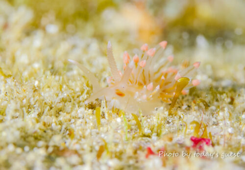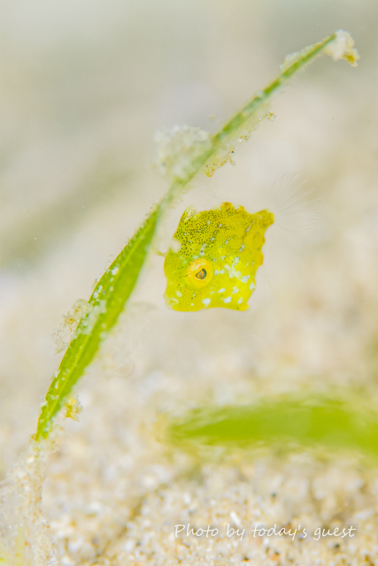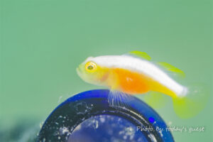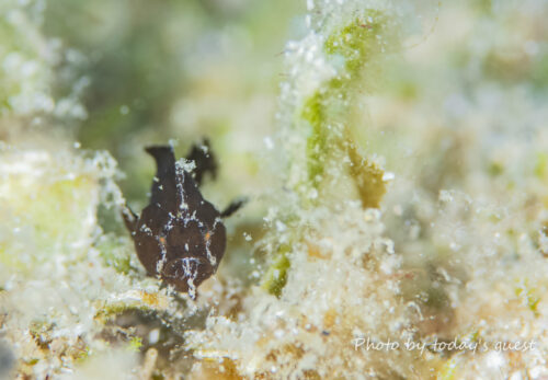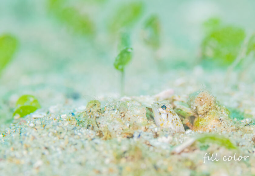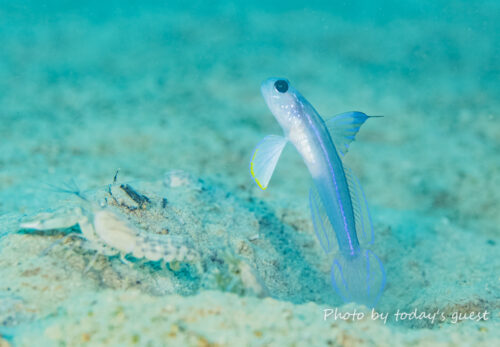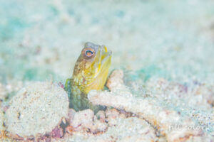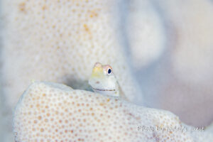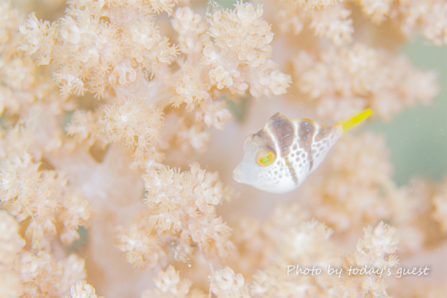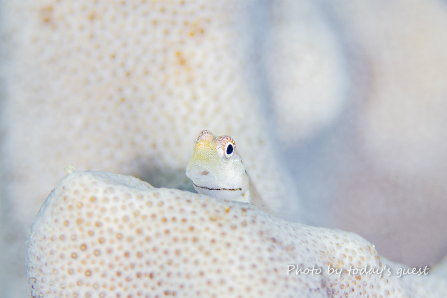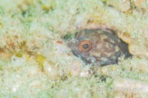 ジョーフィッシュの幼魚 鉛筆くらいの太さかな? なんて場所に家作ったんでしょう(笑) いずれ蹴とばされるな…